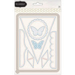 For my next card I turned heart die-cuts into balloons with the help of some paper string (stolen from those same Homemade Phrase Tags). For my scalloped border I used a die from the Homemade set and hid the seam behind the kraft tag.